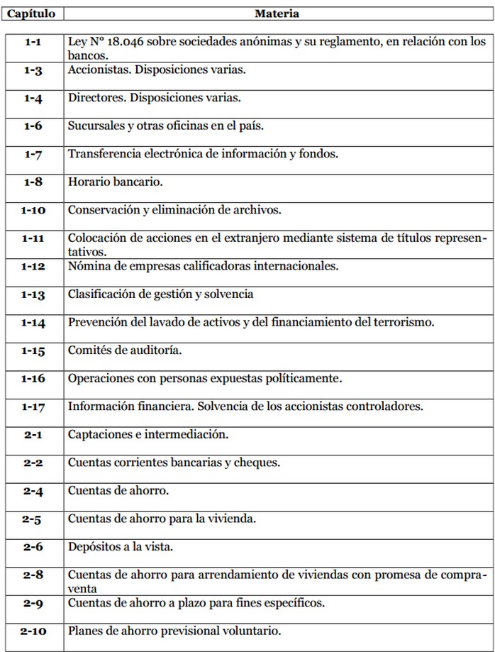 Como consecuencia de lo anterior, se agrega a la Recopilación Actualizada de Normas el nuevo Capítulo 1-17 y se reemplazan las hojas N° 1 del Índice de Capítulos y del Índice por Materias.