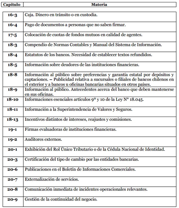 "Sin perjuicio de lo anterior, en lo que se refiere específicamente a la gestión de la continuidad del negocio, la evaluación de esta Superintendencia cubrirá los aspectos que se detallan en el Capítulo 20-9 de esta Recopilación."