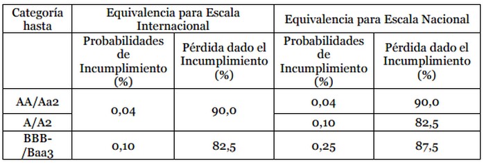 Se podrá aplicar el método de sustitución antes indicado, cuando el avalista o fiador, incluidas las Instituciones de Garantía Recíproca, sea una entidad calificada en alguna categoría asimilable a grado de inversión por una firma clasificadora local o internacional reconocida por esta Superintendencia, sustituyendo la calidad crediticia del deudor o grupo de deudores directos, según corresponda, por la calidad crediticia del avalista o fiador, asociando a cada categoría las siguientes equivalencias:
