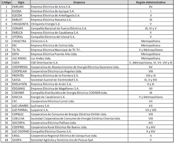 1 Para efectos del presente decreto, la empresa Chilectra S.A. mantendrá esta denominación sin perjuicio de la modificación de razón social a ENEL Distribución Chile S.A. informada mediante carta GER. GEN Nº 197/2016 de fecha 22 de noviembre de 2016.