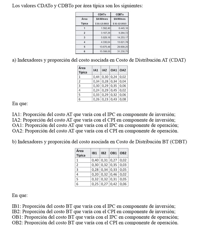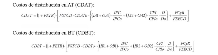 Los costos de distribución en alta y baja tensión, CDAT y CDBT respectivamente, se calcularán de la siguiente forma: