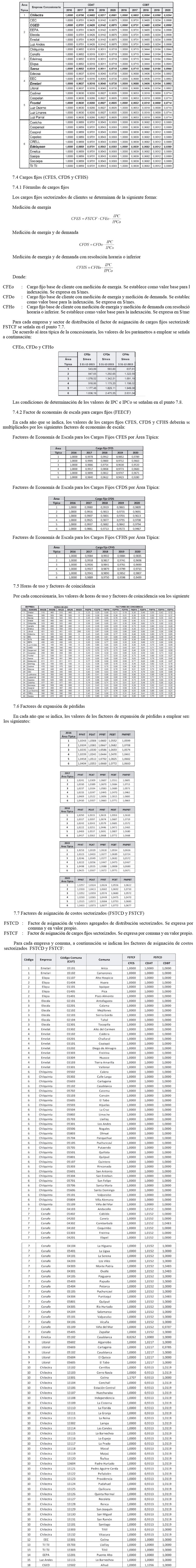 Para cada empresa y sector de distribución el factor de asignación de costos sectorizados FSTCD se señala en el punto 7.7.