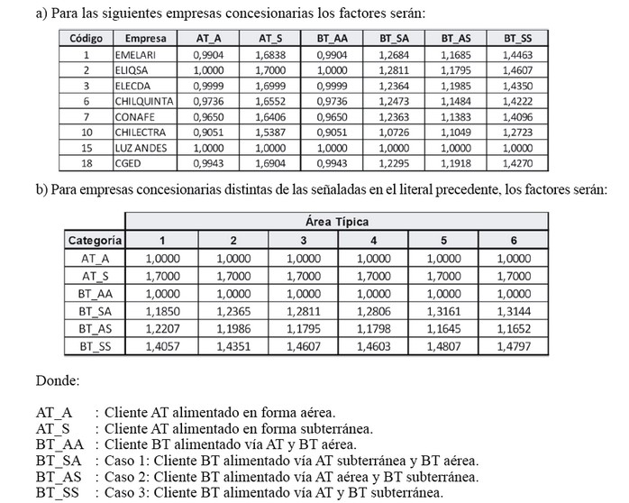 Los factores de modulación de costos subterráneos que deberán multiplicar los factores de asignación de costos sectorizados (FSTCD), son los siguientes: