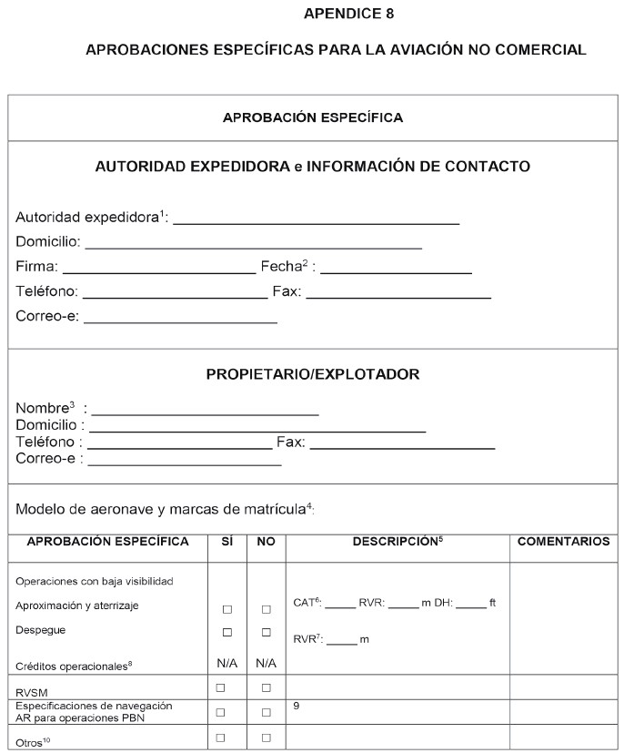 10. Aquí pueden anotarse otras aprobaciones específicas o datos utilizando una línea (o un bloque de varias líneas) por aprobación (p. ej., aprobación específica para operaciones de aproximación, MNPS).