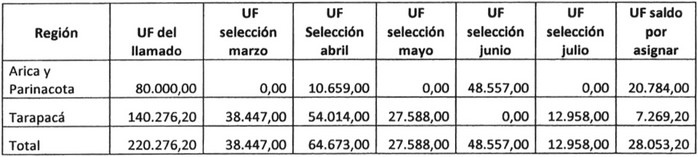 . 2. Apruébase el monto de los recursos asignados en la selección del mes de julio, del Llamado Extraordinario dispuesto por la resolución exenta Nº 884 (V. y U.) de 2017, y sus modificaciones, conforme al cuadro siguiente:
