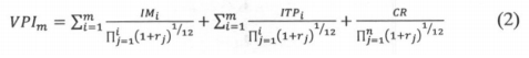 El valor de VPIm conforme a lo dispuesto en el artículo 1.7.6.1 de las Bases de Licitación, se calculará mensualmente, en UF, de acuerdo a la siguiente relación: