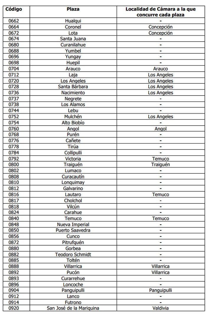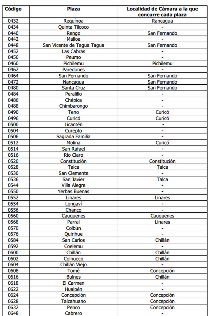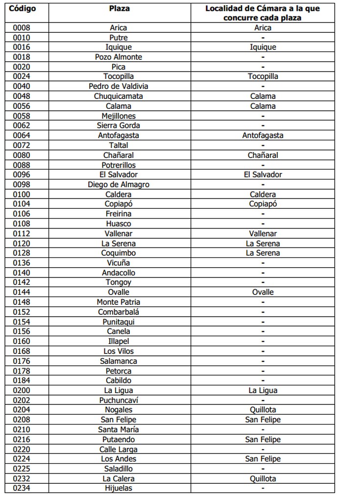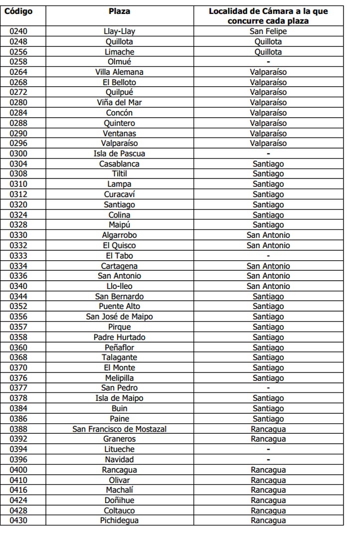 PLAZAS Y LOCALIDADES DE CAMARA.