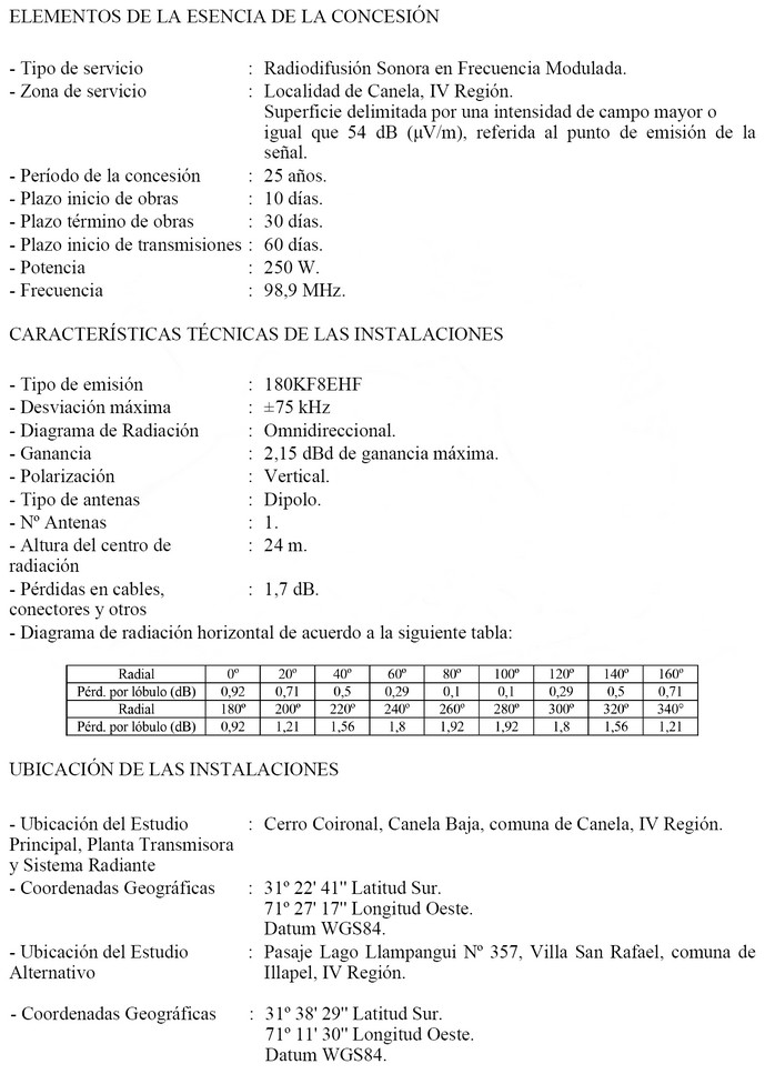 OTORGA CONCESIÓN DE RADIODIFUSIÓN SONORA EN FRECUENCIA MODULADA PARA LA LOCALIDAD DE CANELA