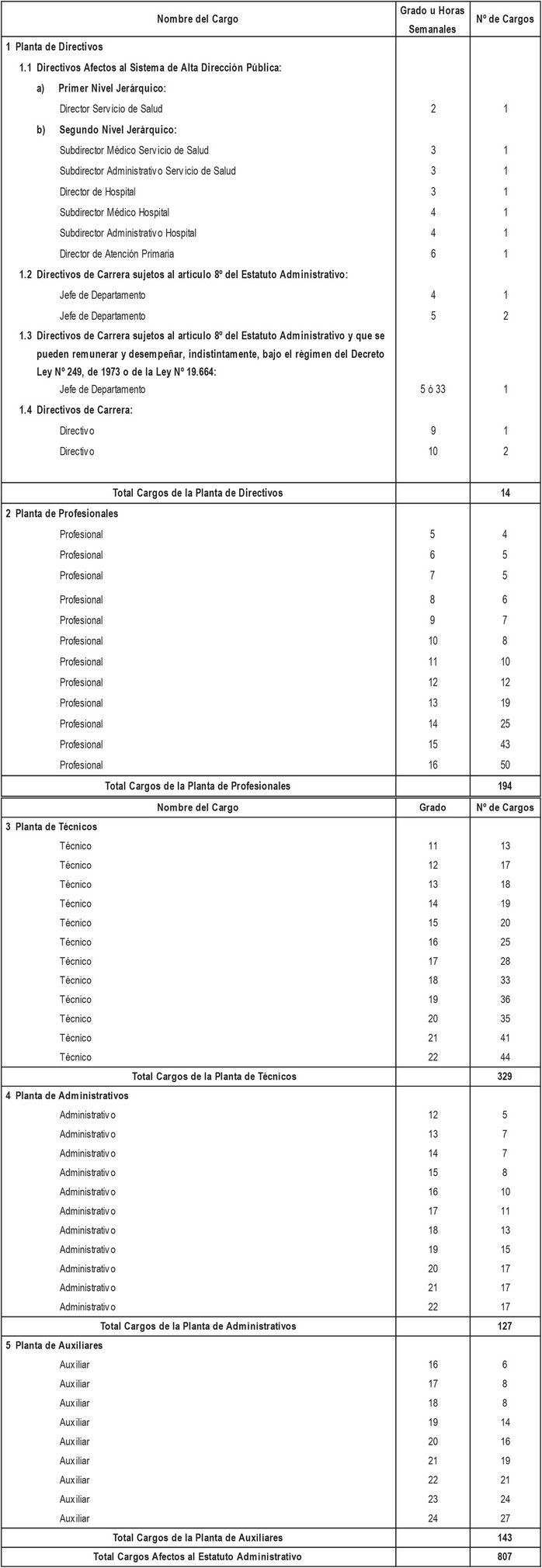 FIJA PLANTA DE PERSONAL DEL SERVICIO DE SALUD ARICA