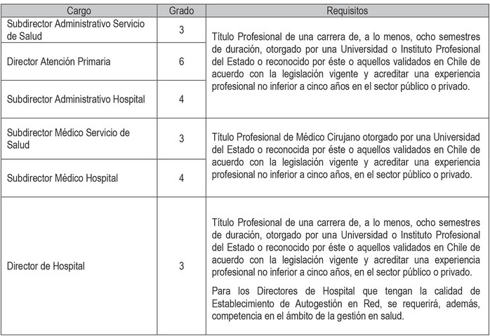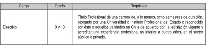 . 1.2 Directivos de Carrera sujetos al artículo 8º del Estatuto Administrativo: