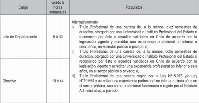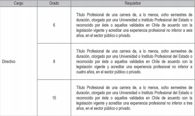 1.2 Directivos de Carrera sujetos al artículo 8º del Estatuto Administrativo:
