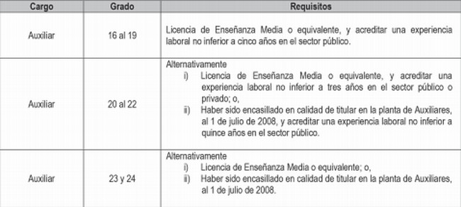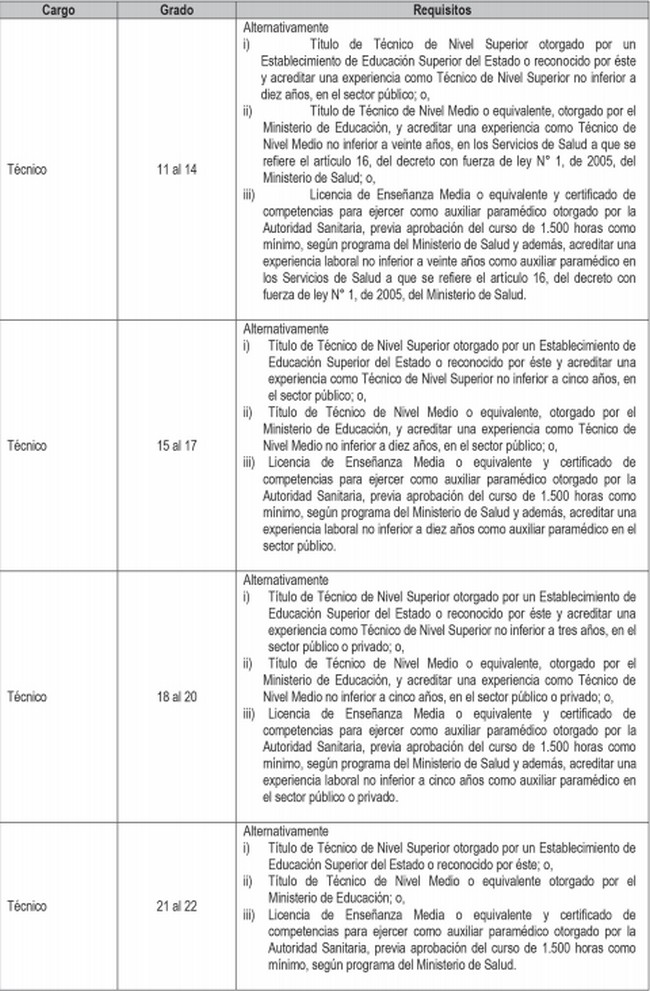 Artículo 2º. Establécense los siguientes requisitos para el ingreso y promoción en las plantas y cargos que se indican a continuación: