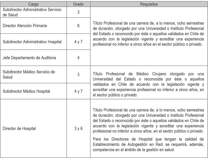 . 1.2 Directivos de Carrera sujetos al artículo 8º del Estatuto Administrativo: