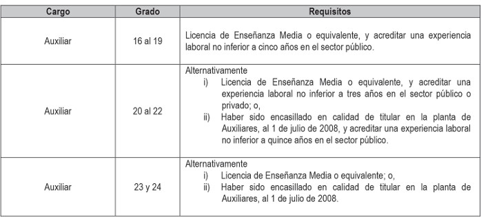 como técnico, administrativo y auxiliar según corresponda en el sector público.