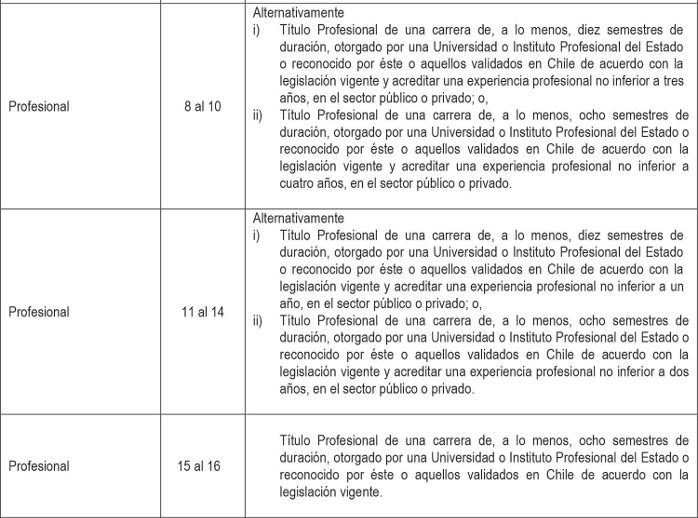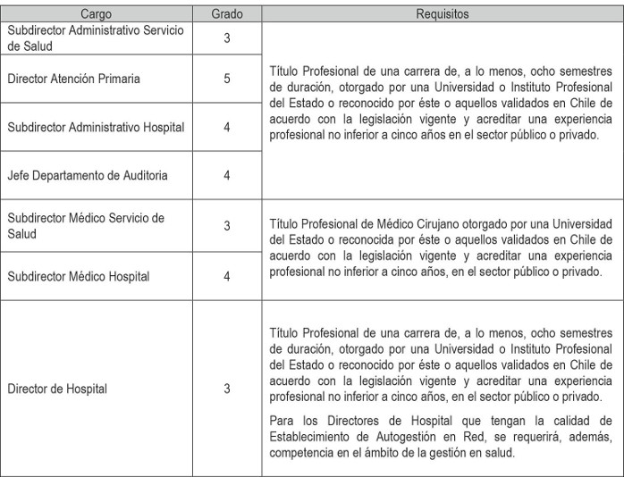 . 1.2 Directivos de Carrera sujetos al artículo 8º del Estatuto Administrativo: