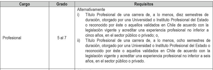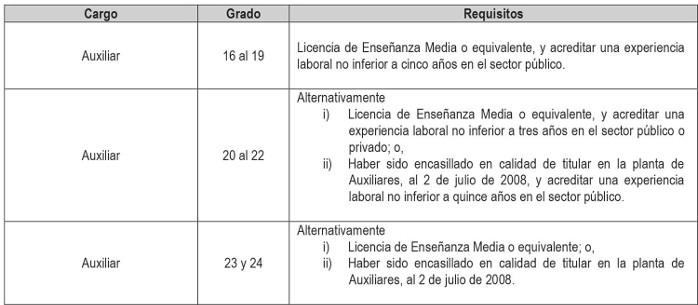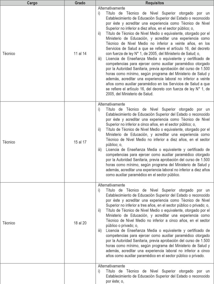 Artículo 2º. Establécense los siguientes requisitos para el ingreso y promoción en las plantas y cargos que se indican a continuación: