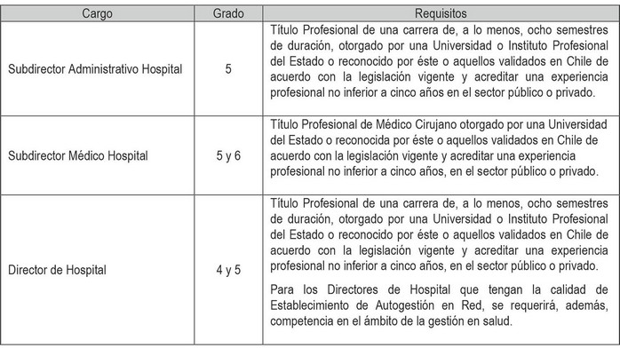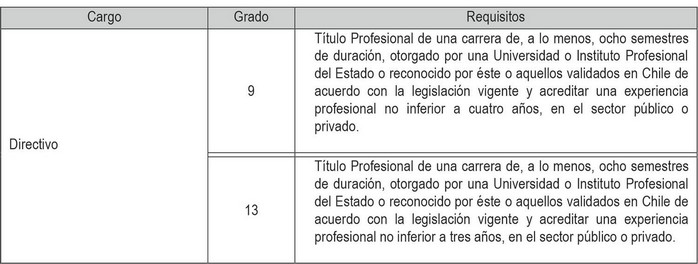 . 1.2 Directivos de Carrera sujetos al artículo 8º del Estatuto Administrativo: