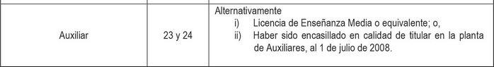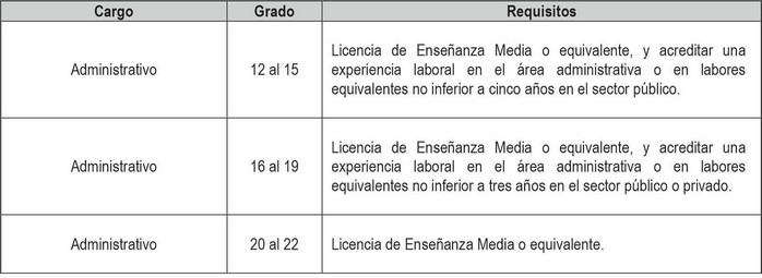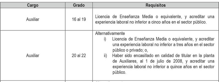 i. Cargos de técnicos, administrativos y auxiliares a proveer, de acuerdo a lo dispuesto en los artículos segundo y tercero transitorios del presente Decreto con Fuerza de Ley, con indicación del número de cargos y su grado.