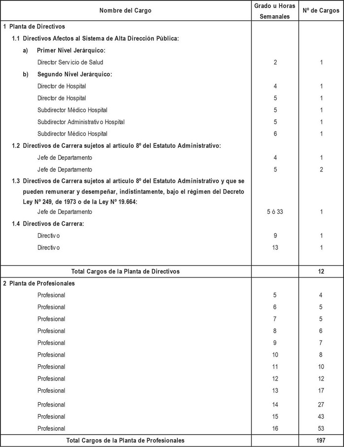 i. Cargos de profesionales a proveer, de acuerdo a lo dispuesto en los artículos segundo y tercero transitorios del presente decreto con fuerza de ley, con indicación del número de cargos y su grado.