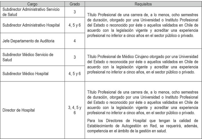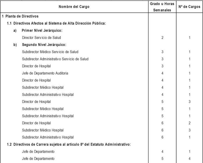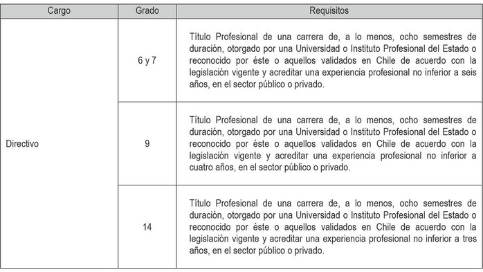 . 1.2 Directivos de Carrera sujetos al artículo 8º del Estatuto Administrativo: