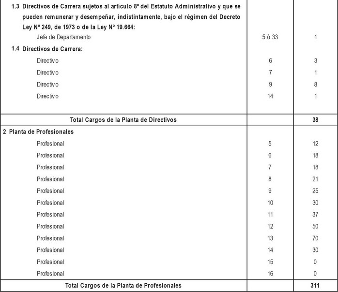 . 1.3 Directivos de Carrera sujetos al artículo 8º del Estatuto Administrativo y que se pueden remunerar y desempeñar, indistintamente, bajo el régimen del Decreto Ley Nº249, de 1973 o de la Ley Nº19.664:
