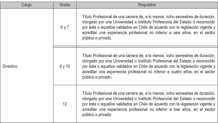 1.2 Directivos de Carrera sujetos al artículo 8º del Estatuto Administrativo: