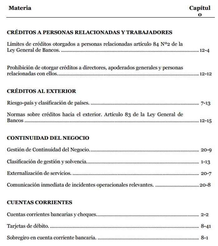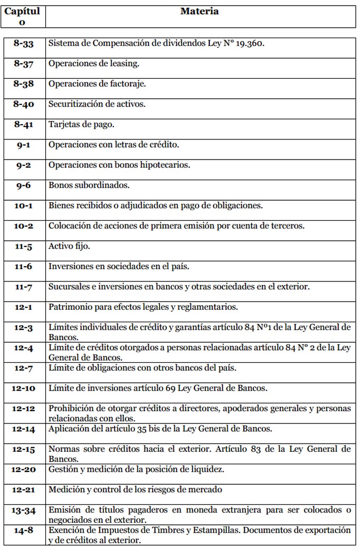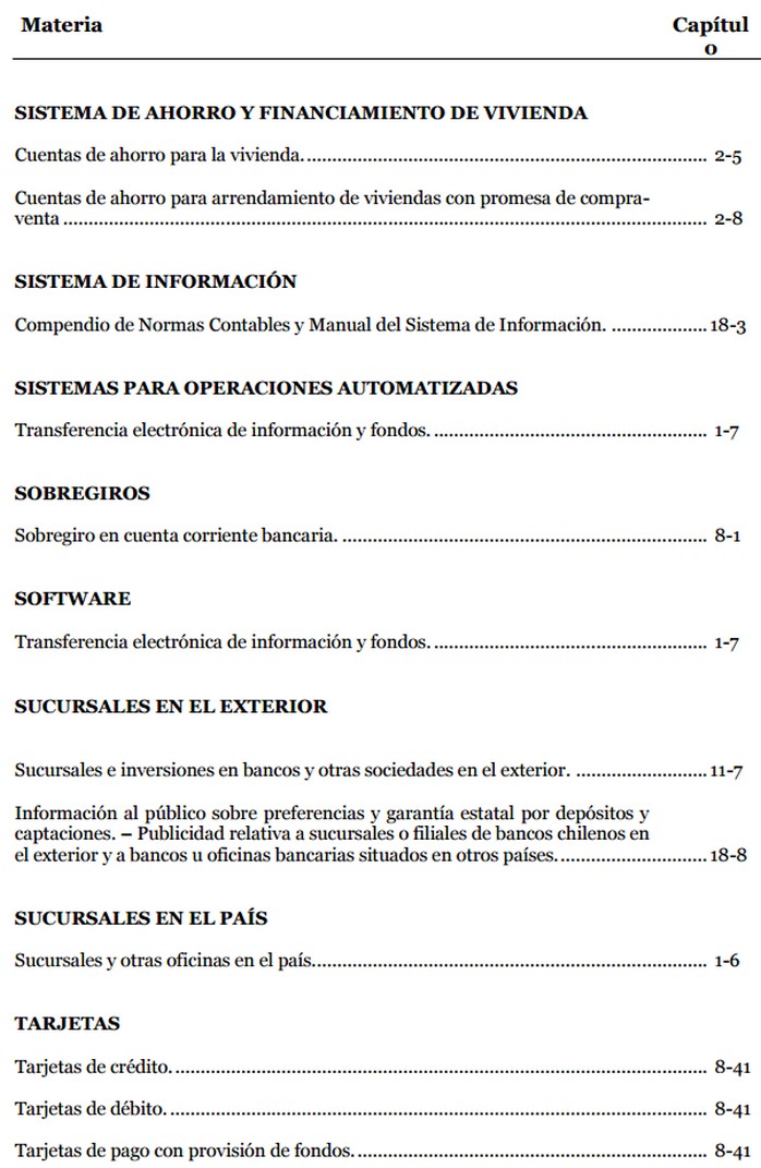 El Banco Central de Chile (en adelante "BCCH"), mediante el Acuerdo N° 2074-02-170629, de fecha 29 de junio de 2017, posteriormente modificado por Acuerdo N° 2104-05-171102, de fecha 2 de noviembre de 2017, reemplazó las disposiciones relativas a la emisión de tarjetas de pago en general, con el objeto de integrar las normas que son comunes a todos los emisores de las mismas, en un nuevo Capítulo III.J.1 de su Compendio de Normas Financieras, impartiendo además instrucciones particulares a los emisores de tarjetas de crédito, débito y pago con provisión de fondos en los nuevos sub Capítulos III.J.1.1, III.J.1.2 y III.J.1.3, respectivamente.