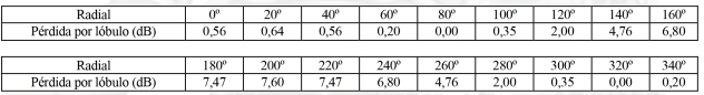-Diagrama de radiación horizontal, de acuerdo a la siguiente tabla: