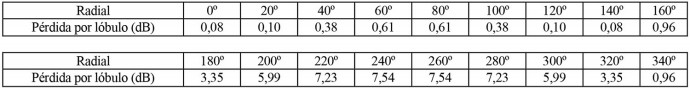 - Diagrama de radiación horizontal, de acuerdo a la siguiente tabla: