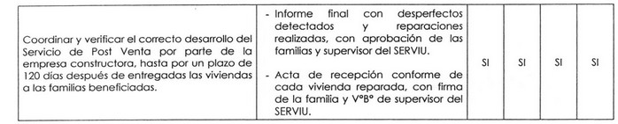 Asimismo, una vez terminada la postventa, el Serviu se hará responsable directamente de verificar el estado de la obra, hasta la devolución de la boleta de garantía por buen comportamiento de la obra a la empresa constructora.".