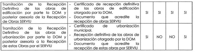 "Respecto a la asesoría para la recepción de obras, esta primero debe permitir la recepción por parte de la Dirección de Obras Municipales (DOM) y, posteriormente, por parte del Serviu, instancia esta última que valida el pago de los servicios de asistencia técnica y la fiscalización técnica de obras, en lo que respecta a esta etapa del proyecto.".