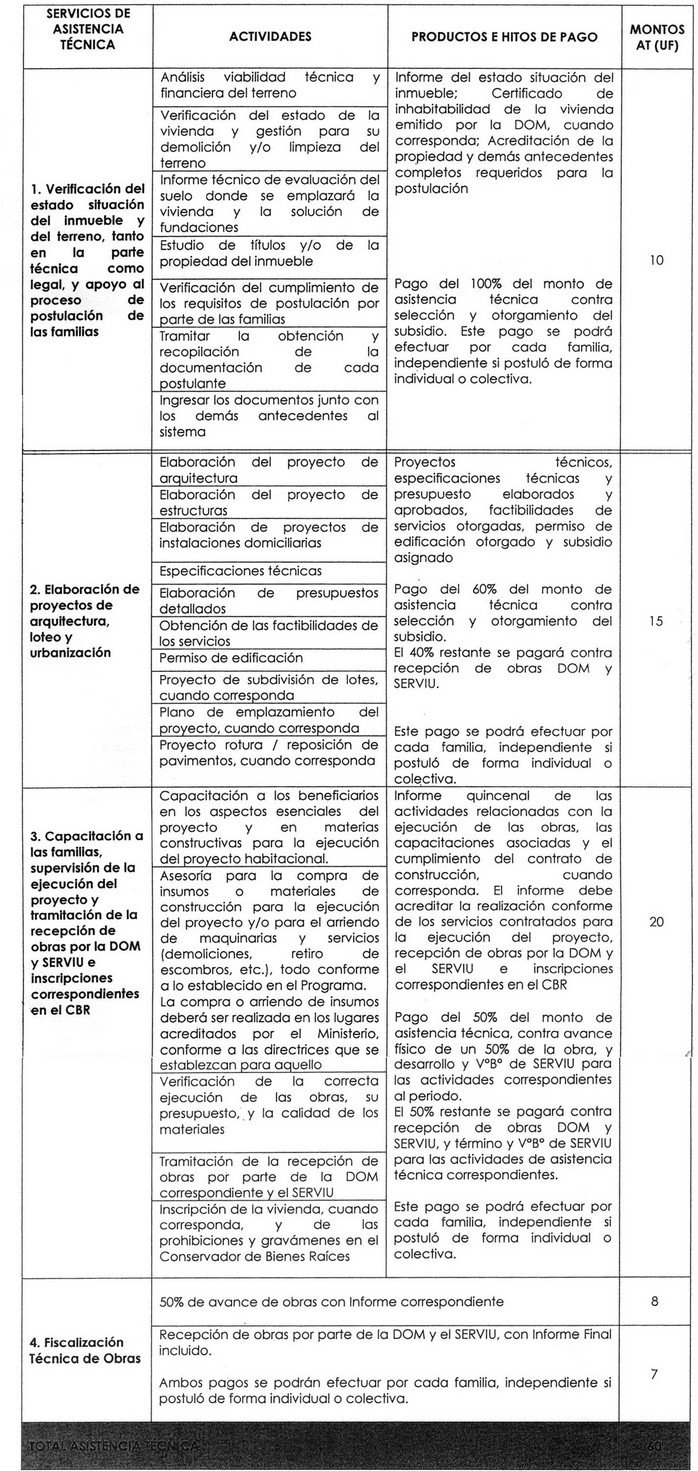 "Tratándose de proyectos (CSP y DP) y Pequeños Condominios (PC), en los que aplique el subsidio para habilitación, el monto adicional de asistencia técnica para el servicio Elaboración de Proyectos Técnicos y Contratación de Obras, ascenderá a 1,8 UF por familia.".