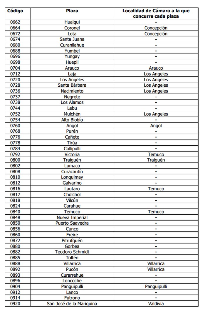 Debido a que se agrega la nueva plaza de Freire a la nómina contenida en el Anexo N° 1 del Capítulo 5-1, se reemplaza la hoja N°4 de dicho Anexo, por la que se acompaña.