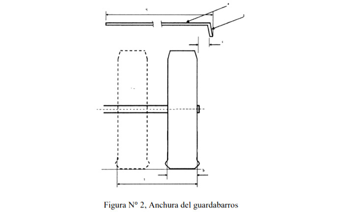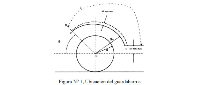El borde trasero deberá extenderse hacia abajo de forma que no se encuentre a más de 100 mm por encima de una línea horizontal que pase por el centro de la rueda (Figura N° 1).