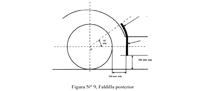 . d. La faldilla posterior no se encontrará a más de 300 mm del borde posterior del neumático, medido horizontalmente (Figura N° 9).