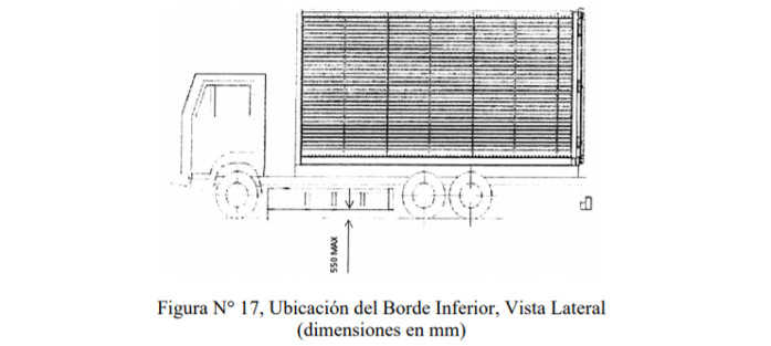 a. El borde inferior del DPL no distará más de 550 mm del suelo en ningún punto (FiguraN° 17), medido con el vehículo sin carga.