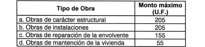 4. Elementos críticos con grave deterioro: Se podrán adicionar hasta 50 UF en condominios de viviendas sociales y hasta 25 UF en condominios de viviendas económicas, cuando existan graves condiciones de deterioro u obsolescencia en redes de servicios, en elementos estructurales y/o sea imperativo ejecutar acciones para el tratamiento de suelos.