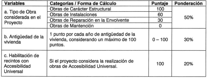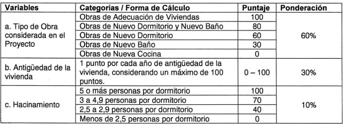 . 2. Factores aplicables a los postulantes a Proyectos de Mejoramiento de la Vivienda