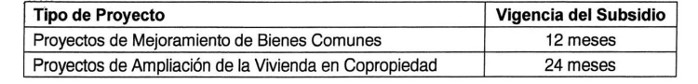 Artículo 83. La vigencia del subsidio para los proyectos regulados por este Capítulo; será la siguiente: