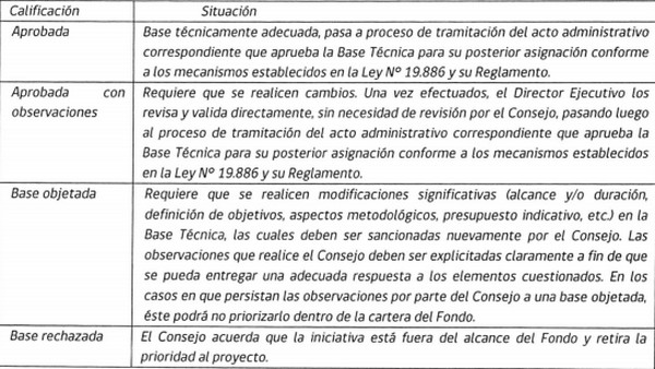 Los consejeros evaluarán las Bases Técnicas propuestas calificándolas como: