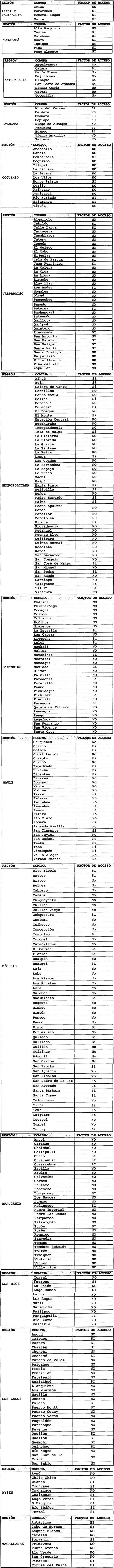 6.- De la misma manera, deberá aplicársele un factor de corrección por difícil acceso, a todos aquellos predios que requieran más de un día para su visita (viaje de ida y vuelta), o en su defecto, que se encuentren a una distancia superior a los 200 kilómetros de la respectiva Secretaría Regional Ministerial u Oficina Provincial del Ministerio de Bienes Nacionales, o que requieran de medios especiales de apoyo para el traslado o transporte de mayor costo. Este costo será calculado multiplicando el monto inicial de pago por un factor de 0,3, aplicable a todos los casos que se encuentren dentro de esta condición. Esto, según los valores establecidos en el siguiente cuadro: