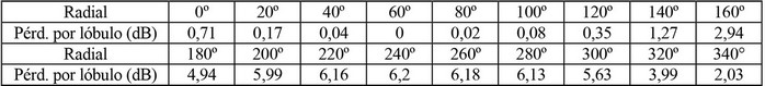 - Diagrama de radiación horizontal de acuerdo a la siguiente tabla: