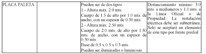 e) Placa paleta: Es aquel elemento autosustentado de máximo dos caras. No movible y fundado en el suelo.