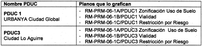. Agrégase en el primer párrafo, a continuación del listado de planos indicados, la siguiente nueva expresión ", RM-PRM-06-1A/PDUC1, RM-PRM-06-1B/PDUC1, RM-PRM-06-1C/PDUC1, RM-PRM-06-1A/PDUC3, RM-PRM-06-1B/PDUC3 y RM-PRM-06-1C/PDUC3".