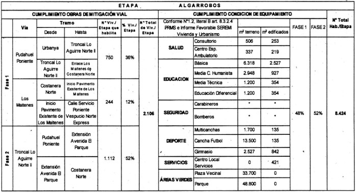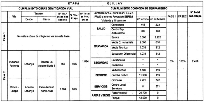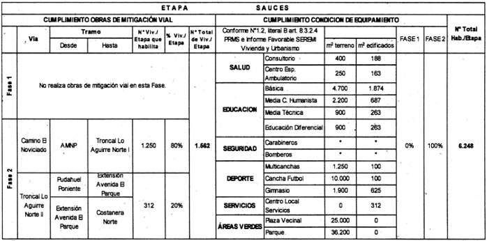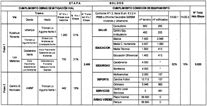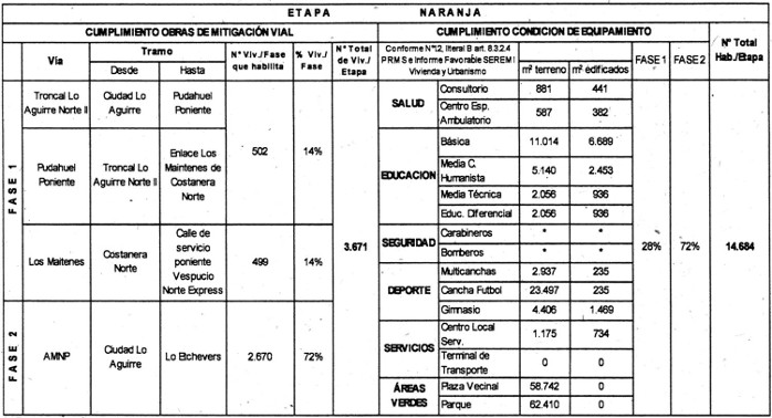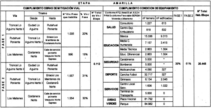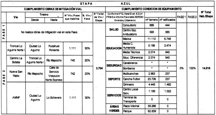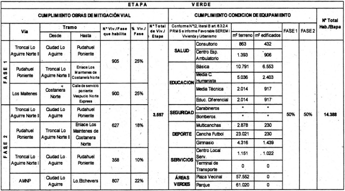 De acuerdo a lo anterior, los proyectos PDUC1 Urbanya Ciudad Global y PDUC3 Ciudad Lo Aguirre contemplan su desarrollo en 9 y 5 etapas respectivamente, que podrán aprobarse indistintamente en forma total o parcial considerando lo siguiente:
