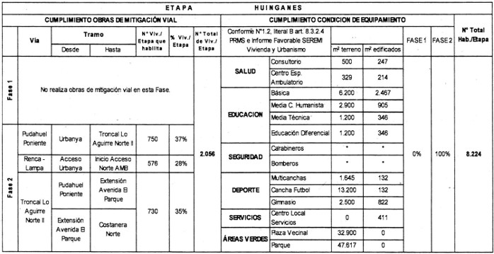 b) Habilitación de Viviendas por Fases de Desarrollo del Proyecto conforme al cumplimiento de Mitigaciones Viales: