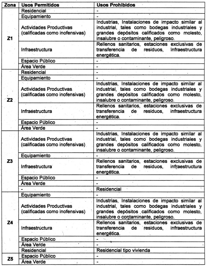 Zonificación Uso de Suelo conforme a lo graficado en el Plano RM-PRM-06-1A/PDUC3 Zonificación Uso de Suelo: