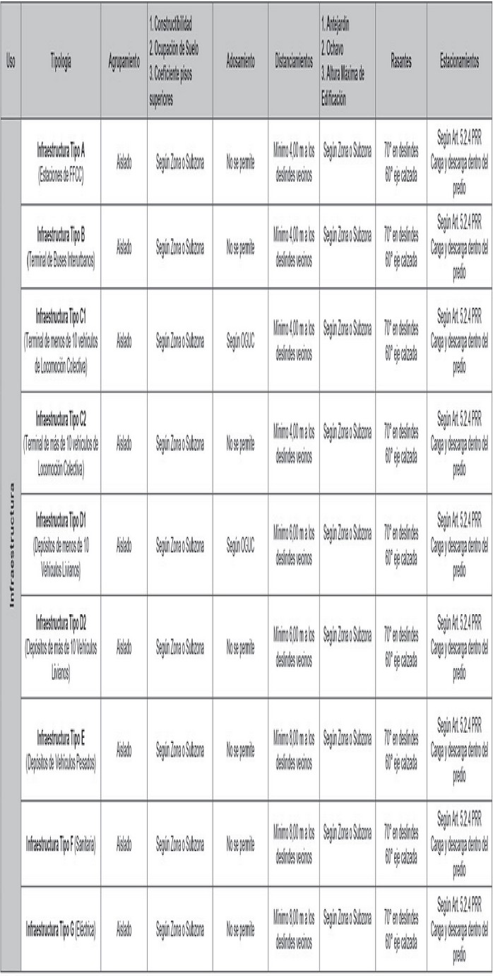. Infraestructura: Energética y Transporte, las que deberán cumplir con las disposiciones contempladas en el Cuadro N° 2 C de la presente Ordenanza.