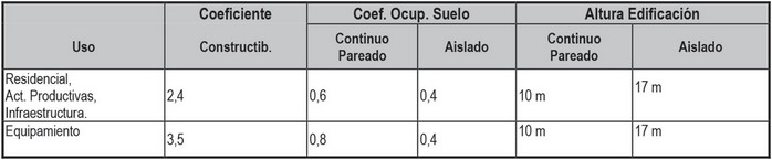 . Reemplácese, en Altura de Edificación, la referencia a Continuo – Pareado: "(1)" por "6 m" tanto para el uso "Vivienda" modificado por "Residencial" como para el uso "Equipamiento".