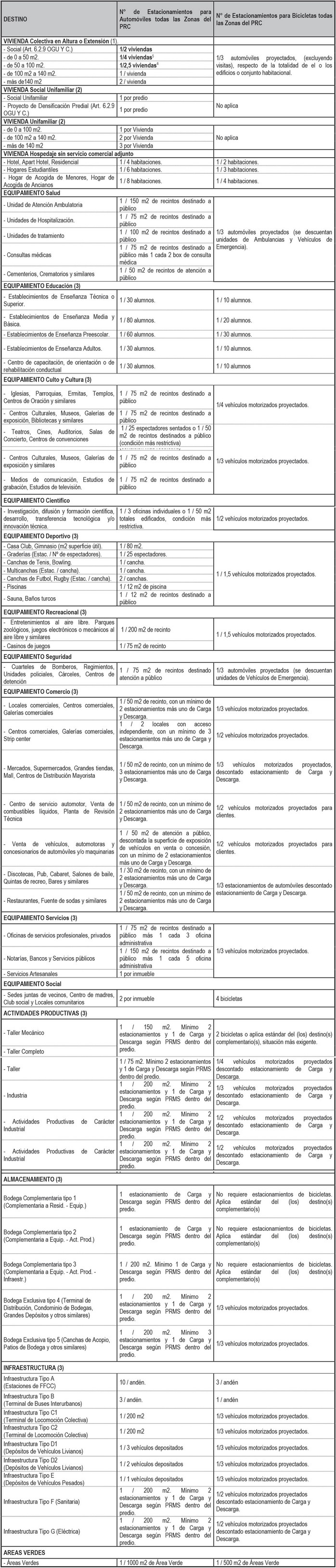 43. Modifíquese Artículo 5.2.4.- Estándares de estacionamientos según destinos, del siguiente modo: